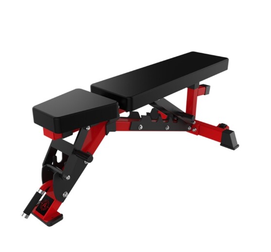 The Arsenal Strength Alpha Series Ladder Style Multi Adjustable bench features 6 levels of angle adjustment on the back pad and 3 levels of angle adjustment on the seat pad for complete exercise variability. Standard wheels make transport easy, and the ability to stand the bench upright for storage maximizes your training space.