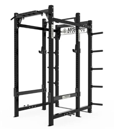 The Arsenal Strength Alpha Series 11 Gauge Racks are comprised of 3×3 11 gauge uprights, 2 inch incremental height adjustments, a customizable, standard bar storage, band pegs, and multi grip pull up crossbars are highlights of this series. Available in Half Rack, Power Rack, and Double Half Rack options.