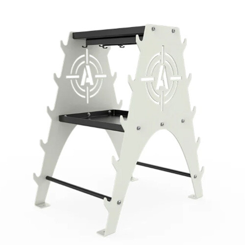 A storage solution for your Fixed Barbells that also saves space by optimizing storage for your handles and smaller accessory items.