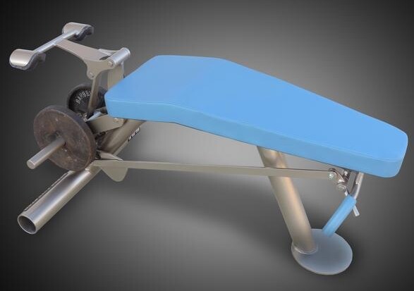 A four-bar linkage driven leg curl machine with ‘effort arm’ journaled between the operator’s knees. Anyone who has experienced muscle-building leg extension and leg curl machines over the years knows that machines with their ‘effort arms’ journaled between the operator’s knees are far more durable than their offset-arm counterparts. It is a trade-off made by manufacturer’s engineering departments, sacrificing durability for ease of access. With Cross Axes Tech you can be assured that machine durability is first, and you will find that our leg extension and leg curl machines are still easily accessed. The machine’s four-bar linkage applies a variably-resistive force that can otherwise only be obtained by using a far less durable cam and cable (or belt) force-varying mechanism. The machine also features both a hand-actuated racking mechanism and infinitely adjustable depth stop for those who would like to adjust how much pre-stretch they prefer.