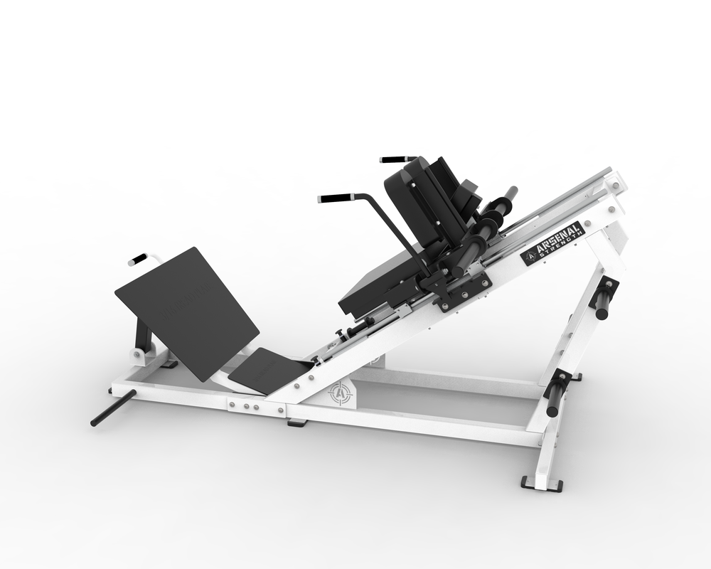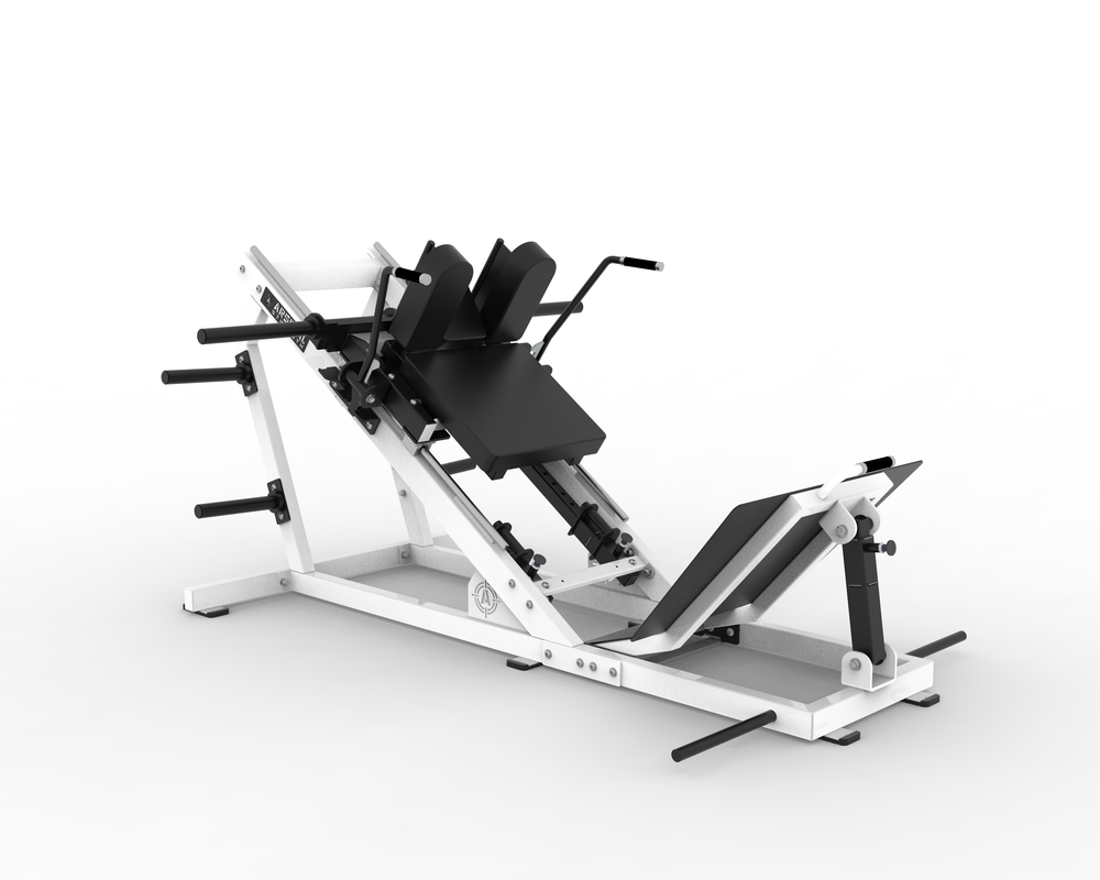 This Hack Squat can be described as heavy duty but still extremely smooth. This Hack Squat features an adjustable foot plate to enable the user to adjust the angle. The Hack Squat can hold up to 26 x 45lbs. Also comes with additional weight storage. This product can be customized to your gym’s colors, with custom frame and pad options.