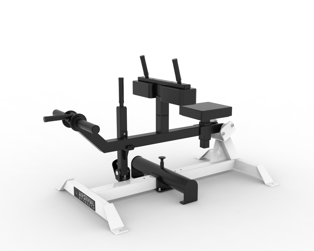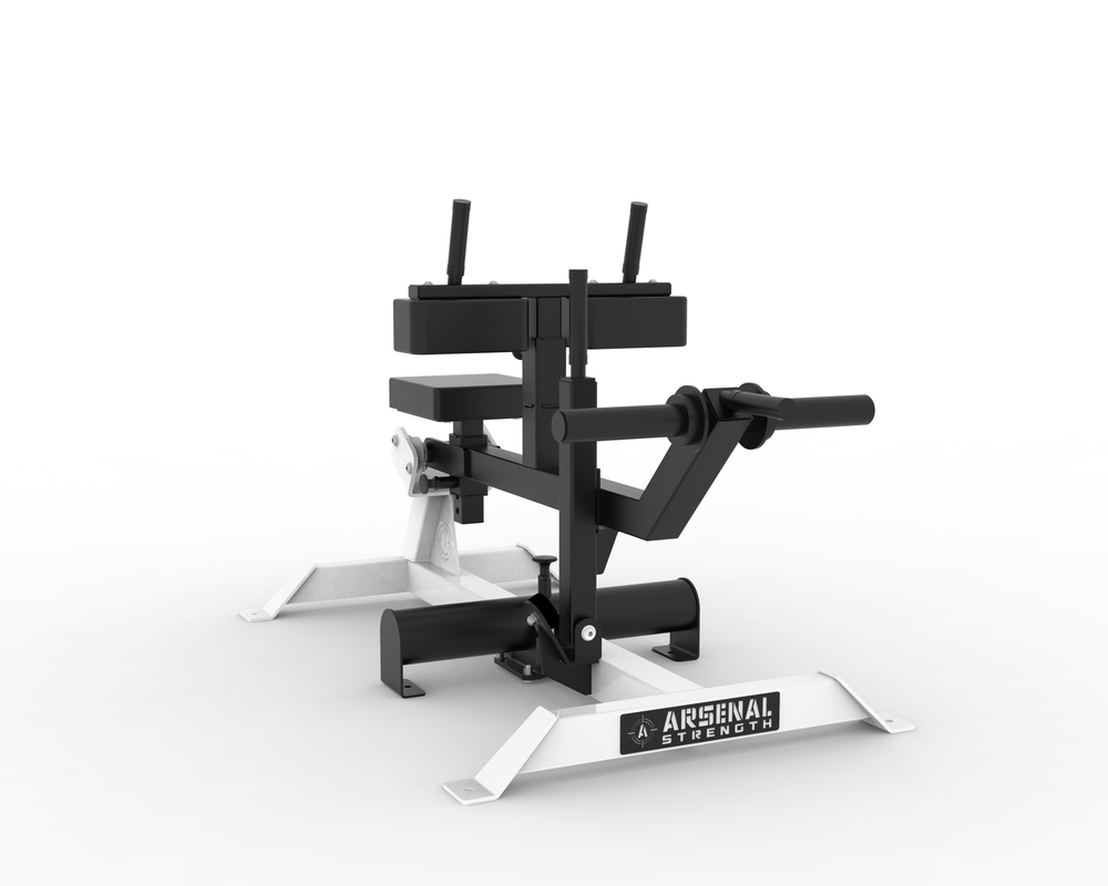 The Seated Calf Raise features multiple adjustments throughout the piece. Including an adjustable vertical knee rest and seat pad. The (5.5″) foot block can be adjusted to fit your needs. The Seated Calf features contoured knee pads to fit onto the thigh. This piece also comes with handles just above the knee pads for self spotting.