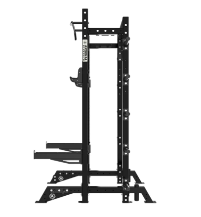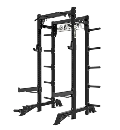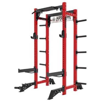 The Arsenal Strength Alpha Series 11 Gauge Racks are comprised of 3×3 11 gauge uprights, 2 inch incremental height adjustments, a customizable, standard bar storage, band pegs, and multi grip pull-up crossbars are highlights of this series. Available in Half Rack, Power Rack, and Double Half Rack options.