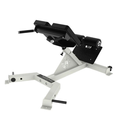 The Arsenal Strength Alpha Series 45 Degree Back Extension has a large foot platform to allow user to utilize a wide range of foot placement options. A 7-height position pad also helps all users to utilize the unit comfortably. Standard band pegs and rear rollers are also standard features.
